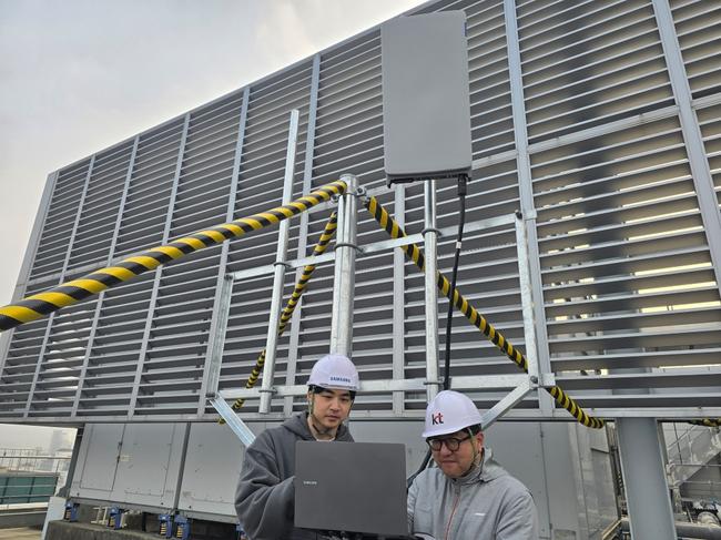 삼성전자 차세대통신연구센터와 KT 연구진이 서울 우면동 소재 삼성전자 서울R&D캠퍼스에서 초고집적 다중 안테나 기술을 검증하고 있다.