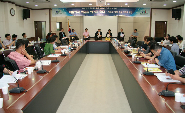 주제발표에 이어 충발연 강현수 원장의 좌장으로 충남대 김필동 교수, 연세대 조한혜정 명예교수, 풀뿌리자치연구소 ‘이음’ 하승우 소장 등이 참석해 마을의 어제와 오늘, 그리고 내일을 얘기해보는 시간도 가졌다.